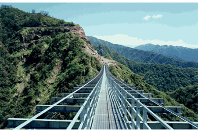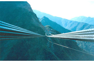A structural form inspired by the straw rope suspension bridges of the Incas was adapted to modern construction materials to provide an efficient, economical, and functional bridge in the mountains of Argentina. It makes use of the established materials of modern cable-supported bridge construction, applied to a structural system that is particularly adapted to the site. Construction of the bridge saved a series of waterfalls and a pristine rain forest valley from the environmental devastation that would have ensued if an at-grade solution had been built.