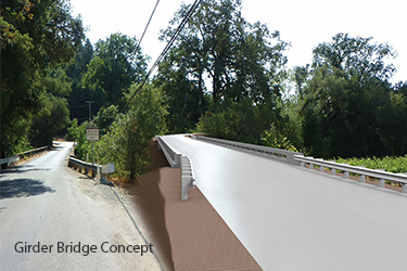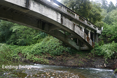 The existing bridge is determined by Caltrans as structurally deficient and replacement is best strategy. The County decided to build a new two-lane bridge upstream of the existing bridge and plans to leave the original arch bridge in place.