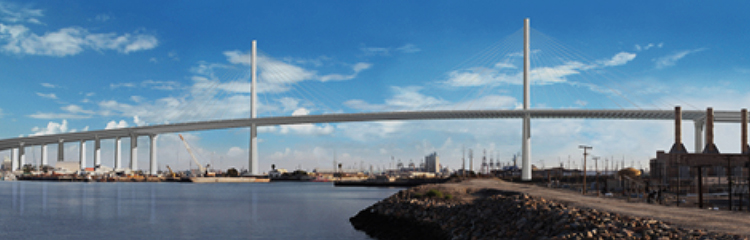 The new bridge will be built north of the existing bridge and will allow access to the port for the tallest container ships, and will be the first long-span cable-stayed bridge in California. A design-build contract was awarded to the SFI JV (A joint venture of Shimmick Construction Company Inc., FCC Construction S.A. and Impregilo S.A.) in July 2012. The lead designer for the SFI JV is Arup North America.