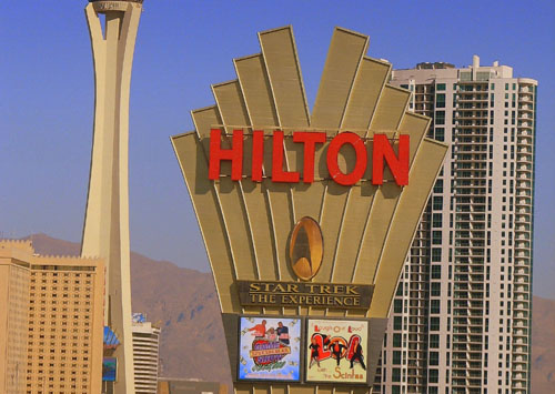 The 280 foot tall Las Vegas Hilton Spectacular Sign was redesigned by KL&A, Inc. of Palo Alto, CA, after the original sign collapsed under severe winds during construction. Severe winds and the signs unusual three-dimensional shape created an unparalleled design challenge.