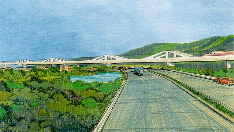 The Taiwan Provisional Engineering Office of High Speed Rail has identified six sites on the alignment of the 270 km High Speed Rail system that require aesthetically pleasing "special bridges" to be designed by international consultants. OPAC was engaged to design the bridge for one of these sites, to carry the rail system across Provincial Highway No. 1 and the First Freeway at Hukou. The bridge is subject to severe design constraints to allow reliable running of the 350 km/hr trains. This elevated structure caries two tracks of high speed rail traffic.