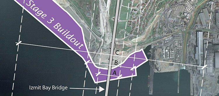 The Izmit Bay Bridge provides a north-south highway link between Dilovas? and the Hersek Peninsula in Turkey. At the north end of the bridge in Dilovasi, there exist port facilities just east of the bridge alignment. A proposed expansion project for these port facilities, within the scope of the BELDE Harbor Container Terminal Expansion Project, would place a container terminal, roll-on / roll-off terminal, and chemical materials storage tanks under the bridge alignment and immediately to its east and west. The port expansion project raised concerns of the owner and the contractor, NOMAYG with respect to maritime and landside port operations influencing the security, safety, and serviceability of the Izmit Bay Bridge.