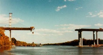 The approaches and main span of the James River (Varina-Enon) Bridge consist of two parallel box girders. The main span is a 600-ft-long cable-stayed bridge. The construction was based on precast segments that are match-cast on the ground. An erection truss was used for the approaches, and cantilever construction was used for the main span. The main span's stays are located in a single plane between the two box girder sections. The contractor engaged T.Y. Lin International (TYLI) to provide engineering support services for the construction of this bridge.
