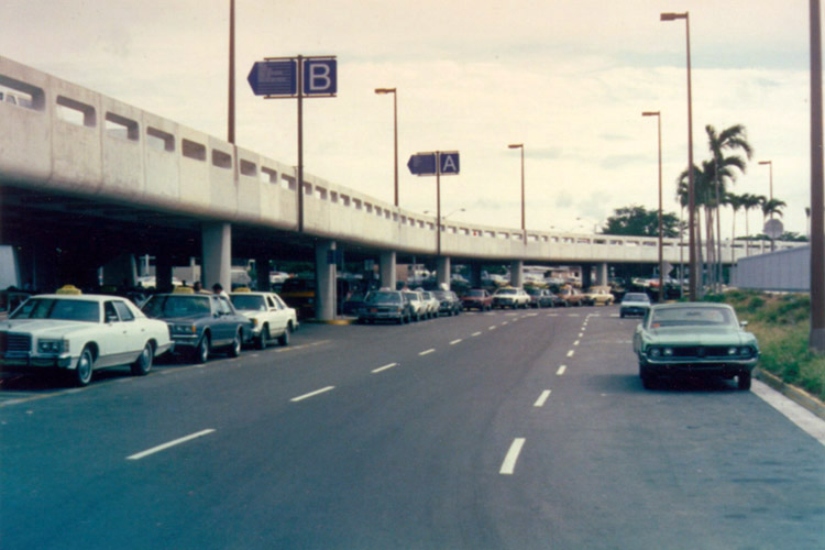 This terminal roadway is an elevated structure 2,400 ft. long and 50 ft. wide. It connects the arrival terminals and is constructed with the use of a two-way, concrete "waffle" slab that spans 60 ft. and is post-tensioned in both directions. The construction method used repetitive metal forms, making this a very economical yet attractive structure. T.Y. Lin International (TYLI) was the structural consultant to Watson, Davila & Villate Consultants of Puerto Rico, the prime consultant.