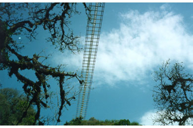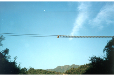 The Arroyo Cangrejillo bridge was built using a modern adaptation of the centuries-old methods used by the Incas for the construction of straw rope suspension bridges in the Andes: