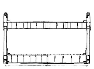 A 35 ft (10.7 m) deep suspended steel stiffening truss system (Fig. 4) supports the upper and lower deck slabs. Steelwork consists of top and bottom chords, truss posts, diagonals, floor beams, and lower deck transverse K-bracing. Expansion joints are provided at each tower. The floor systems consist of concrete slabs supported on steel stringers and the floor beams. The trusses are supported by the suspenders and by rocker posts at the towers. Longitudinal restraint is provided only by pendulum action of the cable system. Transverse restraint is provided through wind locks at the towers in the bottom chord plane. The continuous spans make use of a traditional truss system with a similar layout.