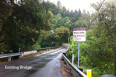 The existing bridge is determined by Caltrans as structurally deficient and replacement is best strategy. The County decided to build a new two-lane bridge upstream of the existing bridge and plans to leave the original arch bridge in place.