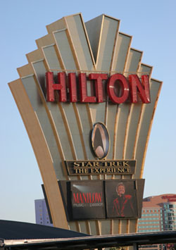 The 280 foot tall Las Vegas Hilton Spectacular Sign was redesigned by KL&A, Inc. of Palo Alto, CA, after the original sign collapsed under severe winds during construction. Severe winds and the signs unusual three-dimensional shape created an unparalleled design challenge.