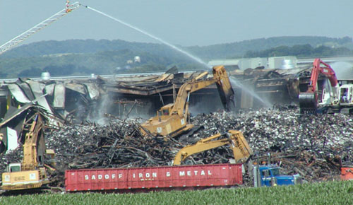 On Friday night, July 12, 2002, the 10-story Quad/Graphics Inc. printing plant warehouse in Lomira, Wisconsin, collapsed and caught fire. The building collapse and subsequent fire killed a worker. The fire burned for days, fed by thousands of pallets of magazine and catalog pages. It took firefighters three weeks to extinguish the fire at Quad/Graphics warehouse. The Quad/Graphics facility is an automated storage and retrieval system for magazine and catalog pages. Legal dispute followed after the collapse. The owner contended that the fire did not cause the warehouse's destruction. Rather, the defective design and construction of the warehouse, and in particular, its automated storage and retrieval system, caused the warehouse to collapse, which caused the fire.