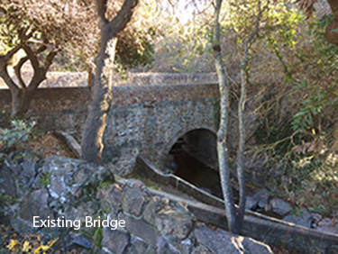The existing crossing consists of a roadway on 45 feet of fill over two 10-foot diameter culverts. As part of their Wildcat Creek restoration project, the East Bay Regional Park District wants to replace the existing roadway fill and culverts with a new bridge that spans the creek from top-of-bank to top-of bank.